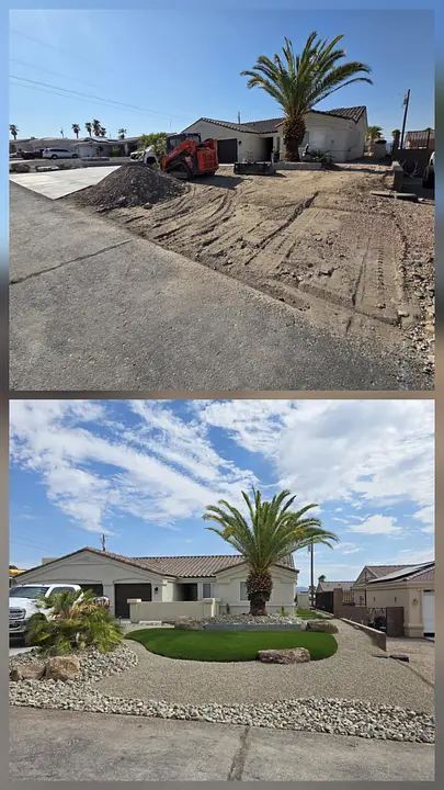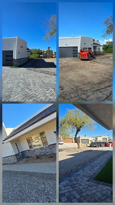 Paver installation, pergola construction, front yard overhaul, and rock & soil delivery.